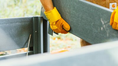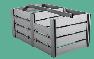 La barre de renfort assure la stabilité du bac à compost, même lorsque les planches en plastique se dilatent sous l’effet de la chaleur.